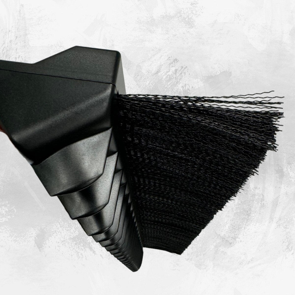 The B-Rake is a meticulously crafted, redesigned bunker rake with shark teeth-like tines that effortlessly groom sand without pulling it to the edges. Its innovative trailing polymer brush leaves a smooth playing surface, eliminating shot-altering claw marks from your bunkers.