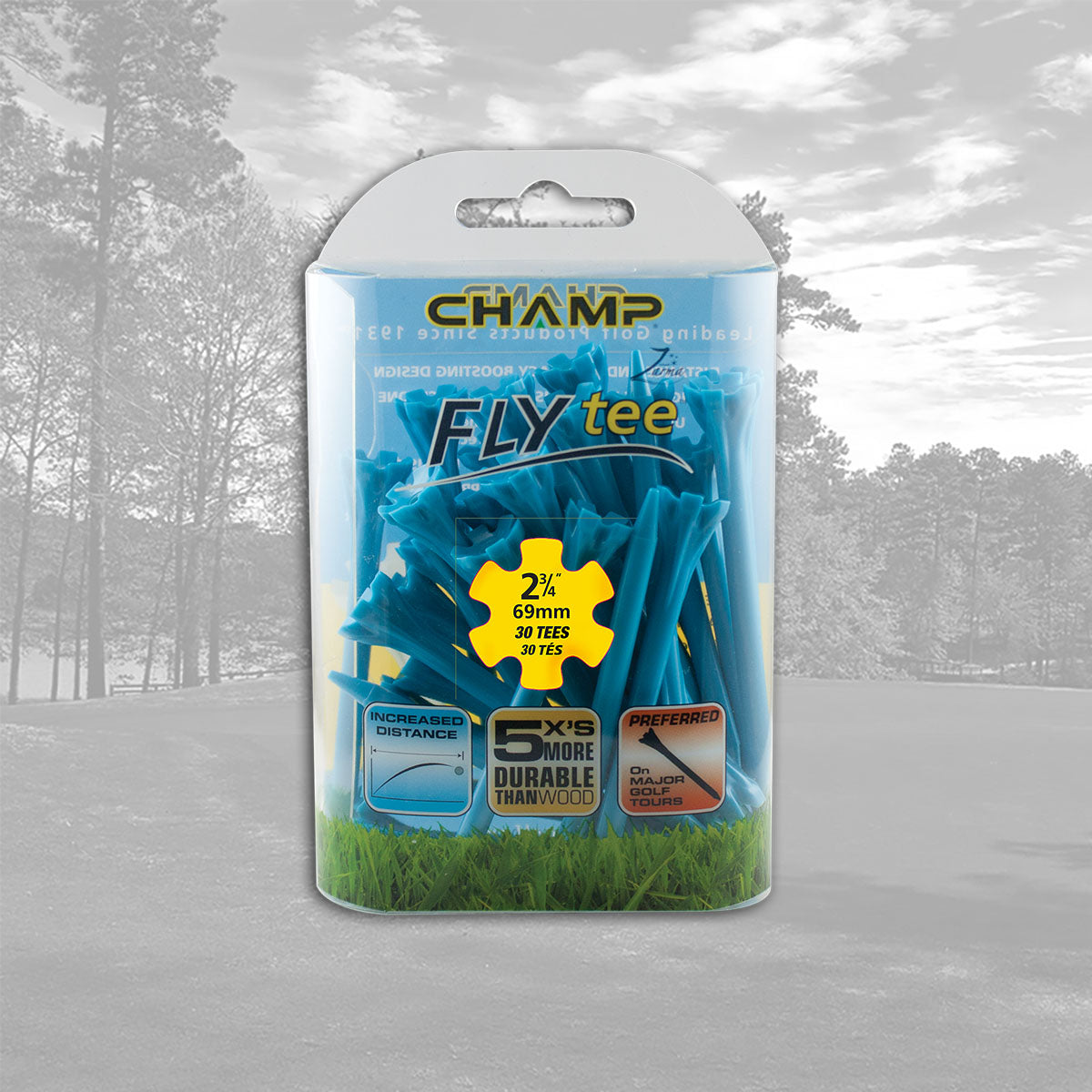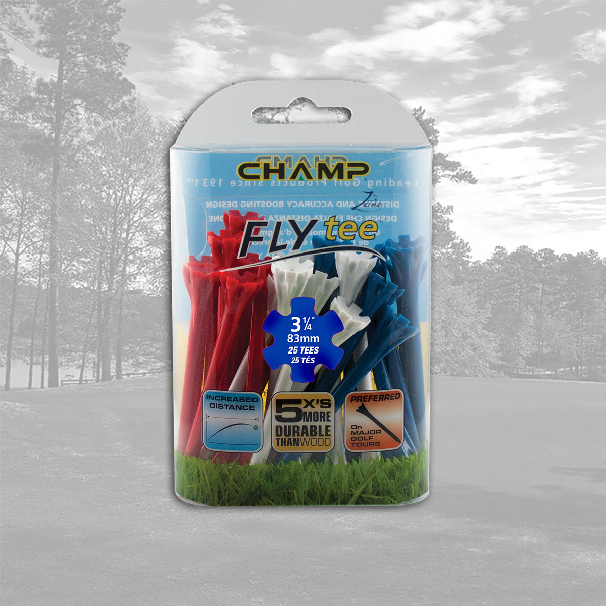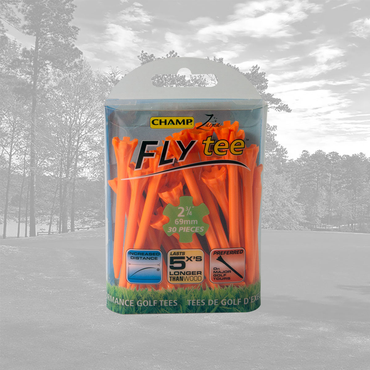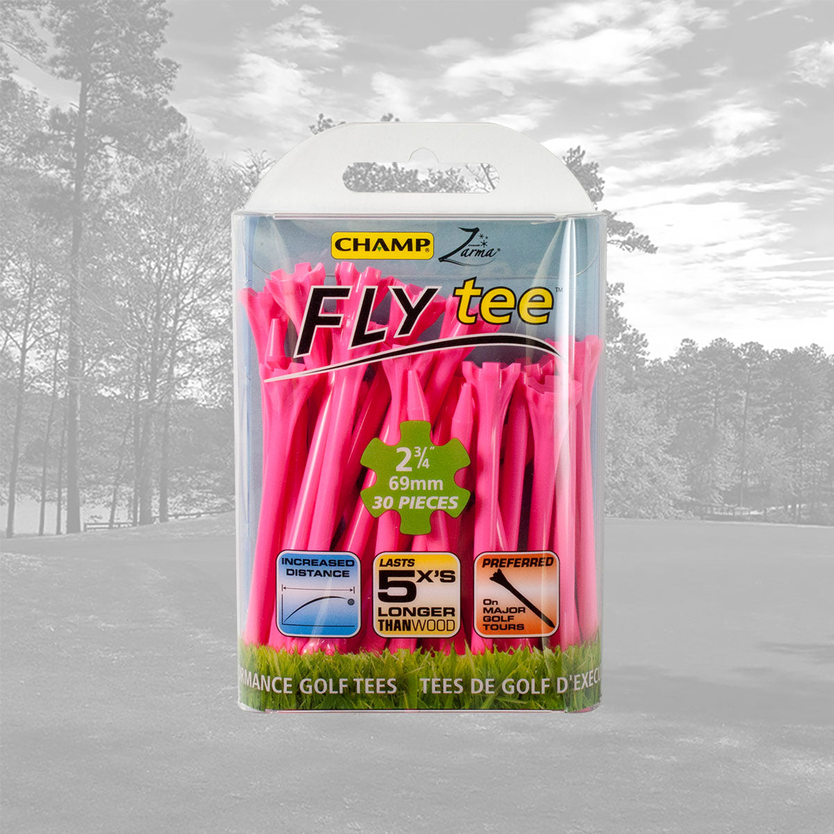 The CHAMP Zarma FLYtee™ is a performance tee that will increase your distance and accuracy from tee to green. Made with a durable plastic design and a 6-prong head it is easier to place the ball on the tee and keep it stable. With its added durability and contoured cup, this tee gives top performance to all golfers, from amateurs to professionals.